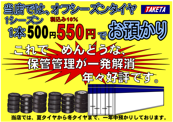 ※タイヤ保管は当店で脱着作業を行って頂いた方への提供サービスで、保管のみは承っておりません。